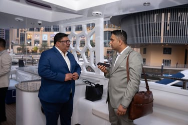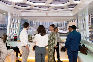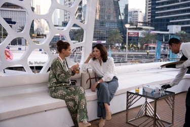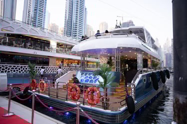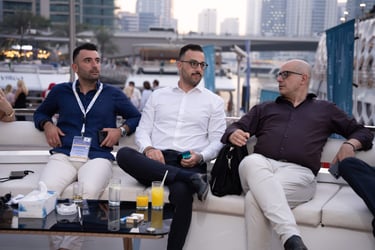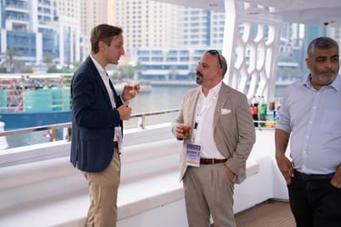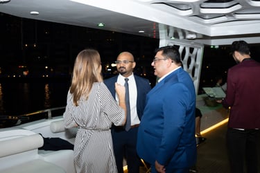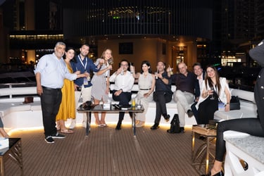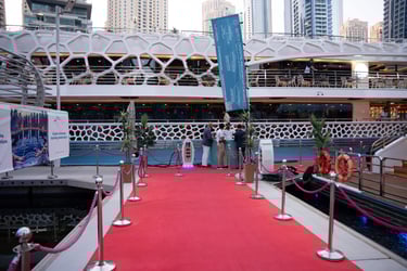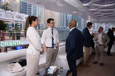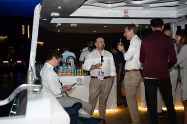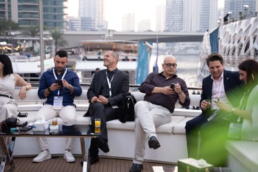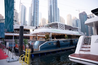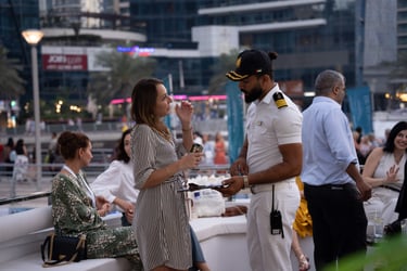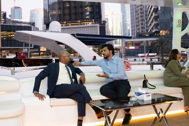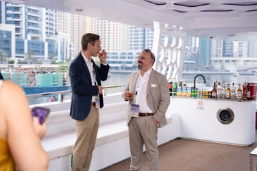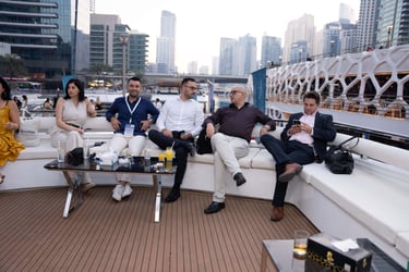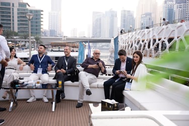 Attendees with VIP passes, Speakers, Exhibitors, and Sponsors will embark on a private yacht for an exclusive cruise around the iconic Dubai Marina, where they'll enjoy a special aperitif in a unique networking setting.